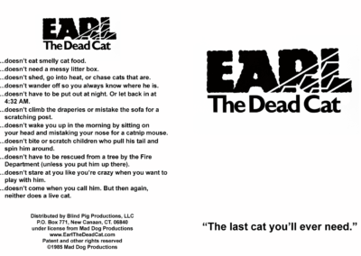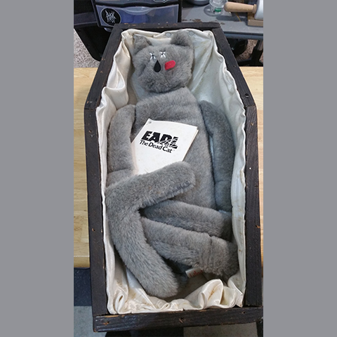 Say goodbye to messy litter boxes, smelly cat food, and being woken up at 2:00 a.m. because “someone” mistook your nose for a catnip mouse. Earl the Dead Cat is the purrrfect maintenance-free pet!